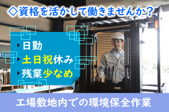 職種/仕事内容 | 仕事内容 【長期安定♪エリア高時給1450円!】日勤専属♪誰もがしってる、あのお菓子工場♪環境保全のレア求人♪安定した給与で長期的に勤務できます!未経験者大歓迎です!週払いOK! <仕事内容> 〇廃棄物の仕分け・運搬(フォークリフト) 工場から出る箱や廃棄物を仕分けして、廃棄する準備をします。 搬送する際にカウンターフォークを使用しますが、1日の2割程度の運転になります。 〇水質検査 工場から出る排水がプールに貯蔵されておりますので、決められた時間に検査を実施します。 〇敷地内環境保全(草刈り等) 敷地内の環境を守る為、草刈りや清掃、その他保全業務を実施します。 立ち作業でのお仕事です。 運転作業となります。 個人作業です。 《職場環境》 男性が多い職場です。 ●外の作業が多いです。 ロッカー有り|休憩室完備 アピールポイント <仕事内容> 〇廃棄物の仕分け・運搬(フォークリフト) 工場から出る箱や廃棄物を仕分けして、廃棄する準備をします。 搬送する際にカウンターフォークを使用しますが、1日の2割程度の運転になります。 〇水質検査 工場から出る排水がプールに貯蔵されておりますので、決められた時間に検査を実施します。 〇敷地内環境保全(草刈り等) 敷地内の環境を守る為、草刈りや清掃、その他保全業務を実施します。 立ち作業でのお仕事です。 運転作業となります。 個人作業です。 《職場環境》 男性が多い職場です。 ●外の作業が多いです。 ロッカー有り|休憩室完備 \充実した福利厚生/ ◎社会保険・雇用保険完備 ◎有給休暇有(6ヶ月経過後、10日付与)※規定あり ◎残業手当 ◎交通費支給(規定内) ◎確定拠出年金制度 ◎週払い制度(週3回対応) ◎お友達推薦制度あり(規定有り) ※1名につき3万円~10万円臨時給与として支給 ◎車(マイカー)・バイク通勤可(無料駐車場あり) ◎制服貸与 ◎仕出し弁当あり ◎ロッカー・休憩室利用可 ◎福利厚生プログラム (宿泊、グルメ、ショッピングなど大幅割引が受けられる10万アイテムのメニューがあります。) |