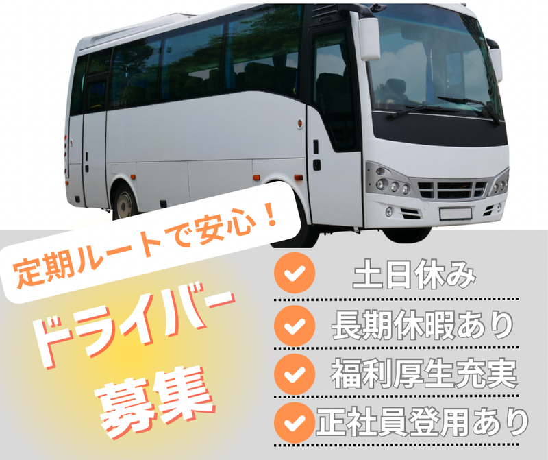 対象となる方 | 求めている人材 ≪必須要件≫ ・大型自動車運転免許 ・明るく対応ができる方 \こんな方は歓迎/ ◎バス会社で運転手の経験がある方 ◎送迎バス等での送迎経験がある方 ◎マイクロバスの運転経験がある方 ˚⊹⁺‧┈┈┈┈┈┈┈┈┈┈┈┈┈‧⁺ ⊹˚ <活かせる経験・スキルなど> 大型ドライバー、送迎ドライバー バス運転手、マイクロバス運転手 役員運転手、観光バスドライバー 中型ドライバー、ハイヤー運転手 タクシードライバー、運転代行業 ルート送迎、施設送迎、企業送迎 配車業務、運行管理、車両点検 ˚⊹⁺‧┈┈┈┈┈┈┈┈┈┈┈┈┈‧⁺ ⊹˚ ※ハローワークでお探しの方も歓迎! |