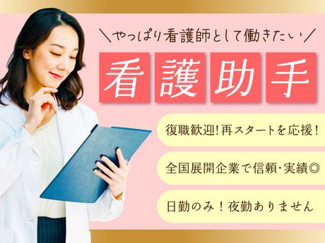 職種/仕事内容 | 仕事内容 医療業界経験者から人気♪好条件&高環境で働きたいなら【看護助手】がオススメです! 働くうえでの絶対条件は? 「高収入」「やりがい」「安定」 「経験を活かせる」「ステップアップ」 「将来に役立つ」「私生活との両立」 …あげるとキリがありませんが、 ルフトではあなたの希望に ピッタリのお仕事をご紹介します♪ ▼お仕事紹介例▼ ************** 以前は看護師。経験を活かして 医療業界で再就職したい! ************** という40代女性の求職者さん。 結婚後久しぶりの仕事復帰で、 今はお子さんもいるので 看護師は夜勤もあり、 シフトが不規則で辛いという事で 看護助手の仕事をご紹介しました。 日勤帯のみで残業もないので定時退社。 さらに土日祝はおやすみ、 有給取得もしっかりできるので 家庭と両立しながら、もう勤続3年目。 ルフトでは条件や職場環境の良さから 長期で働き続けられるスタッフが多いんです♪ ■お願いしたいお仕事  ̄ ̄ ̄ ̄ ̄ ̄ ̄ ̄ ̄ ̄ 看護師さんのサポート業務をお願いします。 ●患者様を検査室へ搬送 ●ベッドのシーツ交換 ●病室等のお掃除 ●お食事の配膳・下膳 ●患者様の身の回りのお世話 ●他の部署へおつかい …など ※介護業務もあります。 ■資格や経験が活かせる  ̄ ̄ ̄ ̄ ̄ ̄ ̄ ̄ ̄ ̄ ̄ お仕事は軽作業がメインで 医療行為はありません。 医療業界や介護業界の経験者が 活躍している職場です! 入職後は先輩スタッフがついて ひとつひとつ丁寧に教えていきます♪ ■ルフト・メディカルケアについて  ̄ ̄ ̄ ̄ ̄ ̄ ̄ ̄ ̄ ̄ ̄ ̄ ̄ ̄ ̄ ̄ 当社は医療・介護に専門特化した アウトソーシング会社です。 全国に60以上の拠点を展開し、 売上実績250億円以上―。 現在、医療業界における当社の 人材派遣のシェア率は国内トップクラス。 高齢化社会が進む中で需要が高いと言われる 医療・介護業界で安定性は抜群! 長期で働けるお仕事をご用意してます。 <YH_263> <YH_L> |