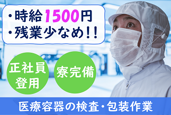 職種/仕事内容 | 仕事内容 <川越市 >大量募集!時給1500円!月収28万円以上可!空調完備・きれいな職場で簡単軽作業!近隣に家具家電付きの寮も用意いたします☆未経験大歓迎!週払いOK◎勤務体系選択可 <仕事内容> ≪医薬品を入れる容器のチェック!≫ ・目視検査作業医薬品を入れる容器や注射器をチェックしていくお仕事です。 1つ1つ手にとって、ヒビや汚れがないかを目で見て検査していく簡単な座り作業です。 ≪製剤作業≫ ・決められた手順通りの作業原料の投入、機械の洗浄作業 ≪包装作業≫ ・外装検査、包装機のオペレーター作業 立ち作業・座り作業どちらもございます。 ≪職場環境≫ 男女活躍中の職場です。 冷暖房完備です。 ロッカー有り アピールポイント <仕事内容> ≪医薬品を入れる容器のチェック!≫ ・目視検査作業医薬品を入れる容器や注射器をチェックしていくお仕事です。 1つ1つ手にとって、ヒビや汚れがないかを目で見て検査していく簡単な座り作業です。 ≪製剤作業≫ ・決められた手順通りの作業原料の投入、機械の洗浄作業 ≪包装作業≫ ・外装検査、包装機のオペレーター作業 立ち作業・座り作業どちらもございます。 ≪職場環境≫ 男女活躍中の職場です。 冷暖房完備です。 ロッカー有り \充実した福利厚生/ ◎社会保険・雇用保険完備 ◎有給休暇有(6ヶ月経過後、10日付与)※規定あり ◎残業手当 ◎交通費支給(規定内) ◎確定拠出年金制度 ◎週払い制度(週3回対応) ◎お友達推薦制度あり(規定有り) ※1名につき3万円~10万円臨時給与として支給 ◎車(マイカー)・バイク通勤可(無料駐車場あり) ◎社員食堂あり(1食400円~) ◎冷暖房完備 ◎無料送迎バスあり(日勤帯のみ) ◎正社員登用制度あり ◎福利厚生プログラム (宿泊、グルメ、ショッピングなど大幅割引が受けられる10万アイテムのメニューがあります。) |