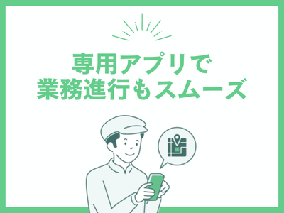 待遇・福利厚生 | 【福利厚生】 待遇・福利厚生 【福利厚生】 【福利厚生】 ・配送用自社アプリの提供 ・駐車場利用料金の会社負担 ・高速道路利用料金の会社負担 ・ユニフォーム貸与 ・請求書作成業務も会社にて代行 ・WワークOK/副業OK |