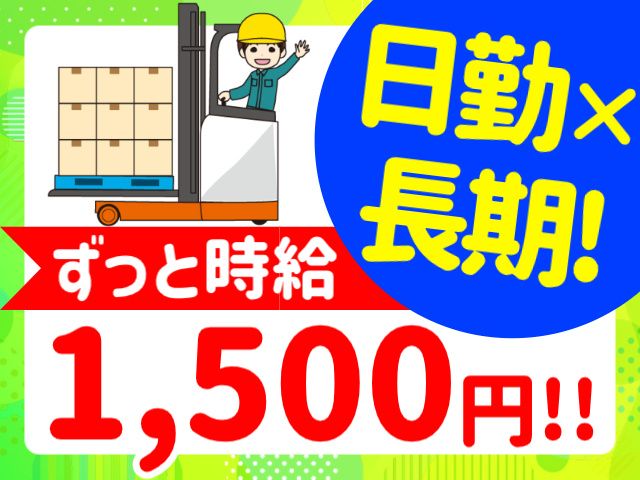 高時給1,500円!最初からず~っとこの時給です! フォークリフト経験を活かして長期に稼ぎませんか!