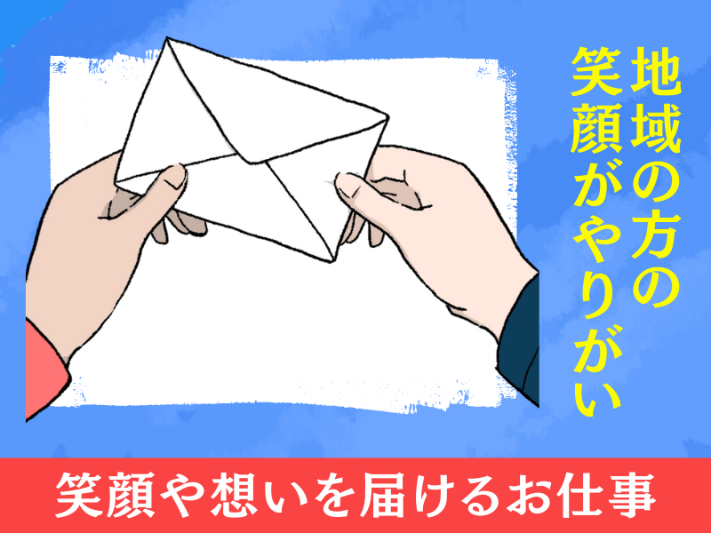 職種/仕事内容 | 仕事内容 ***おすすめポイント********* ◎2026年2月1日~入社可能! ※入社時期応相談 ◎バイク・2輪の乗務未経験者OK ◎バイク好きな方大歓迎! ◎配達は固定ルートで安心! ◎研修体制バッチリ!しっかりサポート! ◎安心・安定!日本郵便の正社員募集! ◎有給休暇取得率99.0% (有給休暇の未使用分について、翌年度以降 計画的に取得する制度あり) ******************** <仕事内容> ■郵便業務 お客様からお預かりした郵便物や荷物を 住所ごとに仕分けし、ご自宅までお届け ※配達は二輪車(バイク)で行います ■営業活動 切手・年賀はがきなどの郵便商品をご案内 <入社後の流れ> 研修体制万全で未経験者も安心! 先輩社員が親切・丁寧に教えていきます。 あなたが一人前になるまで メンバー一丸となってサポートします。 配達エリアは固定で決まっています! ルートを覚えてしまえば、 スムーズに郵便物・荷物を届けられます。 地域の方の笑顔がやりがいに繋がります! お客様から愛され、 信頼される存在になれるよう、 少しずつ一緒に成長していきましょう。 <アピールポイント> 【創業から150年以上続く歴史ある企業】 郵便、貯金、保険などの基幹サービスを 支える日本郵便で働きませんか? インターネットやSNSが普及したとはいえ、 ユニバーサルサービスを担う企業として、 日々、お客様の元に郵便物や ゆうパックをお届けする使命に 変わりはありません。 地域に密着した郵便局です。 配達先でお客様とお話ができます♪ お客様から感謝されることが多く、 やりがいのあるお仕事です。 ◎有給休暇取得率99.0% 有給休暇の未使用分について、翌年度以降 計画的に取得する制度があります。 ◎男女ともに長く勤めやすい 環境が整っています。 |