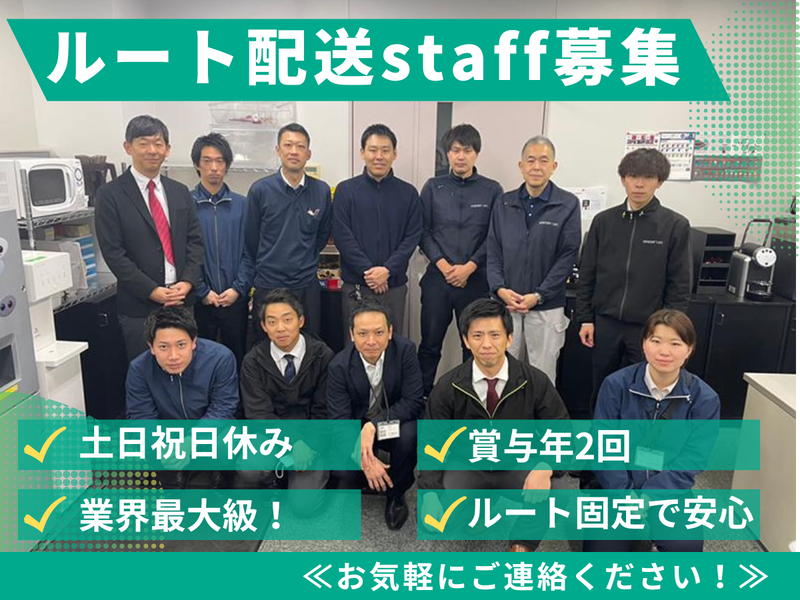職種/仕事内容 | 仕事内容 業界最大級✨ オフィスコーヒーサービスのルート配送募集! ハイエースを運転して 担当エリアを回るお仕事! *【具体的なお仕事内容】* オフィスコーヒーサービスのルート配送 ⏩ハイエースで担当エリアの企業様を回り ドリンクサーバーの備品補充をメインに お客様に最適な商品のご提案等もお任せ♫ ⭐新規開拓なし♫ 決まった取引先への訪問なので ルート固定&関係性も築きやすいです! たまに差し入れを頂くこともあります♫ ⭐幅広い年代の方々が活躍中! =================== *年間休日123日* 土日祝休みでプライベートも充実! 産休・育休取得実績あり! 複数回取得しているスタッフも多数! 結婚や育児など、生活の変化に柔軟に 対応して安定して働けます。 *未経験スタート歓迎* 普通免許があればドライバー経験不問! 研修がしっかりとあるので安心◎ *職場の雰囲気◎* スタッフ同士の関係良好! 長期で働くスタッフが多数在籍しており、 定着率も抜群! 明るく気遣いが出来るスタッフが多いので、 困った時も相談に乗ってくれますよ♪ |