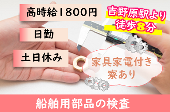 【高時給1800円!】日勤専属!大手企業にて大募集!吉野原駅から徒歩8分!車やバイクの通勤もOK♪月収33万円以上も可能!入寮OK!うれしい土日休み◎検査未経験の方大歓迎!週払い制度あり◎