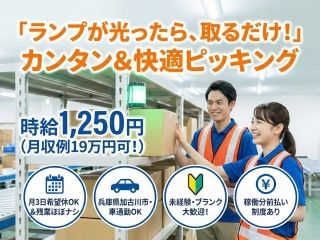 【物流関連会社でのピッキング作業】《加古川市》ランプが光ったら商品を取るだけ モクモク作業が好きな方大歓迎