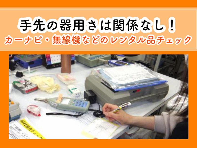 職種/仕事内容 | 仕事内容 \未経験歓迎♪主婦さん活躍中/ =============== コツコツかんたん軽作業 レンタル機器の お手入清掃・検品検査・データ入力など 多様なお仕事があります =============== ★面接からの採用率90%! ★手先の器用さは関係なし! ★面接時、履歴書不要! =============== アルバイト・パート 仕事内容/物流センター内作業 =============== ご依頼のあった商品の発送から ご返却に至るまでの各種作業があります 【取り扱う商品】 カーナビ・ドラレコ・無線機など 小型軽量のものから、各種測定器となります (主に建築現場・工事現場で使用されるもの) 【仕事内容】 ・レンタル機器のお手入れ清掃 ・各種レンタル品の検品作業 (機器ごとに手順や所用時間は異なります) ・返却されたレンタル品の開梱/伝票照合 ・出荷に伴う伝票発行・送り状発行など入力作業 など様々なお仕事があります いずれも、慣れるまでは在籍パートさんが 横に付いて手ほどきします 【職場環境】 広々したセンターのオフィスエリア又は倉庫エリア ※倉庫エリアでのお仕事はお時給優遇! =============== 在籍スタッフについて =============== 営業所トータルで80人程度! 作業する班によっては 男性ばかりの班も 女性の多い班もありますが、 全体の8割近くが女性で、 うちほとんどが主婦さんです! ★未経験から始めたパートさんが多数 機器ということでの不安は要りません。 丁寧に教えるので全くの未経験でも大丈夫◎ 安定企業なので安心して働ける環境です! |
