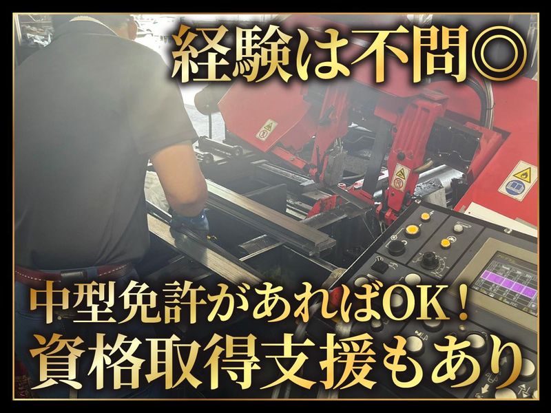 職種/仕事内容 | 仕事内容 鋼材の卸販売を行う”大協磨鋼材”。 そんな当社で金属切断などの加工 や配送業務をお任せします! ✅ここがPOINT! #創業60年以上の安定企業 #資格取得援助あり #土日祝休み×年間休日124日 →仕事とプライベートの両立も可能◎ #月平均残業時間5h未満 #職場では女性も活躍! #職場見学もOK =========== 具体的なお仕事内容 =========== ▶鋼材の切断・加工 具体的には以下の流れで作業します! お客様から発注 ↓ 受注内容(加工内容)に基づき、 機械で鋼材を切断・加工します。 ↓ 加工した鋼材の仕分け・梱包 ↓ 出荷準備 ▶鋼材の配送 既存のお客様へ鋼材の配達します。 最初は横乗りから始め、各々の ペースに合わせお教えします! ≪配送エリア≫ 神戸市内を中心に兵庫県下での のルート配送を行います! ※基本的には鋼材の加工業務が メインとなります。 \未経験でも大丈夫です✨/ 一見すると難しく感じるかもしれま せんが、スキルや経験は無くても 大丈夫です◎ 各々のペースに合わせ お教えしますので安心してください! 「何か手に職つけたい、、」 「スキルアップを目指したい、、」 そんな方も大歓迎です!! ============== 挑戦を歓迎する会社です◎ ============== 「新しい何かに挑戦したい」 「変化を生み出したい」 ーそんな人も大歓迎です。 同じ工場内でもキャリアは千差万別 です。現在、当社で最も若い30代社員 は加工スタッフとして当初勤務して おりましたが、現在は営業職にも挑戦し、 日々奮闘しています! ”やる気があって熱量がある若手には できるだけ色々な挑戦をさせてあげたい” そんな社長の想いのもと、若手メンバーにも “挑戦の場”と“成長の機会”を与えてくれる環境です。 もちろん無理に仕事を押し付けることは ありませんが、「挑戦したい!」という気持ちが ある方にはその機会をご準備します◎ ================= メリハリつけて長く働ける環境◎ ================= 創業より60年以上鋼材の加工を行う当社。 信頼や技術はしっかりと受け継ぎつつ、 社員の働く環境は日々改善、アップデート を続けています。 *年間休日124日 *土日祝休み *17時定時 *月平均残業時間5h程度 など休息はしっかりと設け、 メリハリを持って働けるように しております。 少人数で働く会社だからこそ、 1人1人の希望や想いには耳を 傾け、働きやすくしかしながら しっかりと結果も出せる組織力 を大切にしています◎ |