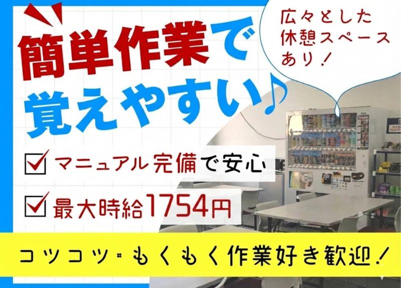 職種/仕事内容 | 仕事内容 ━━━━━━━━━━━━━━━━━━━━━━ ✨ 夕勤だから「続けやすい」と好評の理由 ✨ ━━━━━━━━━━━━━━━━━━━━━━ ✅ 深夜時給1,754円でしっかり収入 ✅ 冷暖房完備・清潔なクリーンルーム ✅ 立ち作業・座り作業が半々で負担少なめ ✅ マニュアル完備&フォロー体制充実 「夜勤は初めて」 「工場勤務に不安がある」 そんな方も安心してスタートできる、 クリーンルーム内での軽作業のお仕事です。 扱うのは、 家電製品などに使われる センサー部品。 ホコリや汚れのない、 静かで落ち着いた環境で作業します。 ⏩【具体的な作業内容】  ̄ ̄ ̄ ̄ ̄ ̄ ̄ ̄ ̄ ̄ ̄ ̄ ̄ ̄ ̄ ̄ ̄ すべて決まった手順があるため、 複雑な作業はありません。 ▶ 材料を機械にセット ▶ ボタン操作などの簡単な機械対応 ▶ 動作チェック・エラーの確認 円盤状の部品を 専用の板に並べる作業もあります。 割れやすい素材のため、 最初はゆっくり・丁寧でOKです。 ⏩ 未経験でも安心できるポイント  ̄ ̄ ̄ ̄ ̄ ̄ ̄ ̄ ̄ ̄ ̄ ̄ ̄ ̄ ̄ ̄ ̄ 作業中にエラーが出た場合は、 無理に対応せずストップすればOK。 近くに社員や先輩スタッフが常にいるため、 すぐに確認・相談ができます。 実際に働いているスタッフの多くが 未経験スタート。 2週間~1ヶ月ほどで作業に慣れる方がほとんどです。 ⏩ 安定企業ならではの働きやすさ  ̄ ̄ ̄ ̄ ̄ ̄ ̄ ̄ ̄ ̄ ̄ ̄ ̄ ̄ ̄ ̄ ̄ 創業65年以上の安定企業。 工場内は常に清潔に保たれており、 冷暖房・休憩室も完備しています。 長く続けたい方や、 働き方が合えば 正社員登用のチャンスもあります。 最後までお読みいただきありがとうございます。 「夜の時間を有効に使って働きたい」 「落ち着いた環境でコツコツ続けたい」 そんな方にぴったりのお仕事です。 ✨ぜひお気軽にご応募ください。 スタッフ一同、お待ちしております。✨ |