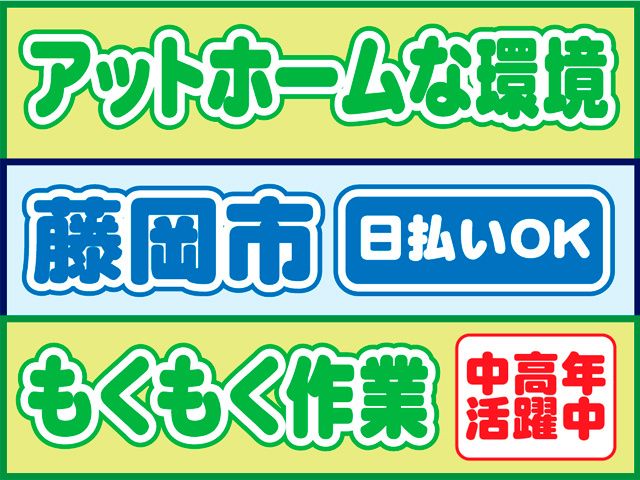 職種/仕事内容 | 仕事内容 藤岡市にある優良企業でのお仕事 中高年・女性の方も活躍中 木材のカット・清掃スタッフ募集 【加工・清掃スタッフのポイント】 〇単純作業・もくもく作業 〇未経験OK 〇時給1,230円スタート 〇日勤 〇土日祝休み 〇20代30代40代50代の男女活躍中 〇日払いOK(規定内) 〇履歴書不要 〇交通費支給(規定内) 〇「マイリク定着支援」導入企業! 【加工・清掃スタッフの仕事内容】 藤岡市でのかんたんなお仕事 <具体的には> 製材所での ・木材のカット ・木くずなどの清掃作業 をお願いします。 資格や知識は必要ありません 作業も簡単なので未経験の方でも安心 職場見学(30分~1時間程度)を実施しております。 【加工・清掃スタッフの勤務について】 〇土日祝休み 〇日勤のみ 8時~17時(実働8時間) 急な発熱・体調不良・冠婚葬祭など、 突発的なお休みに柔軟に対応しております。 【こんな経験活かせます】 下記経験者は前職活かせます。 〇製品製造パート・アルバイト 〇軽作業パート・アルバイト 〇仕分け・ピッキングパート・アルバイト 〇倉庫内派遣 〇主婦(夫)パート(職種不問) 〇中高年パート 前職不問で採用しております。 ブランクのある方もOK(経験の浅い方もOK) 〇ご不明な点はお気軽にお問い合わせください〇 お電話でのご応募、ご質問も受付中 株式会社ロフティー高崎支店 TEL0800-222-6888(フリーダイヤル) お仕事情報など採用ページはこちらから https://entori.jp/loftygunma コーディネーター・定着支援のWサポート体制導入 「マイリク定着支援」導入企業! アンケートで職場の様子を確認し、 コーディネーター・定着支援担当が連携してサポート。 はじめての派遣でも安心して働けるよう迅速かつ 丁寧にサポート対応いたします。 |