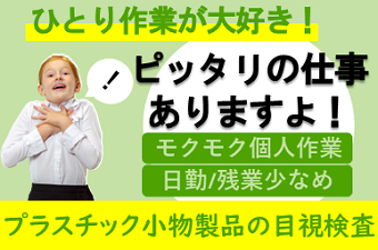≪プラスチック製品の目視検査≫細かいモクモク作業が好きな方にオススメ!日勤&土日お休みで女性大活躍中の職場です。