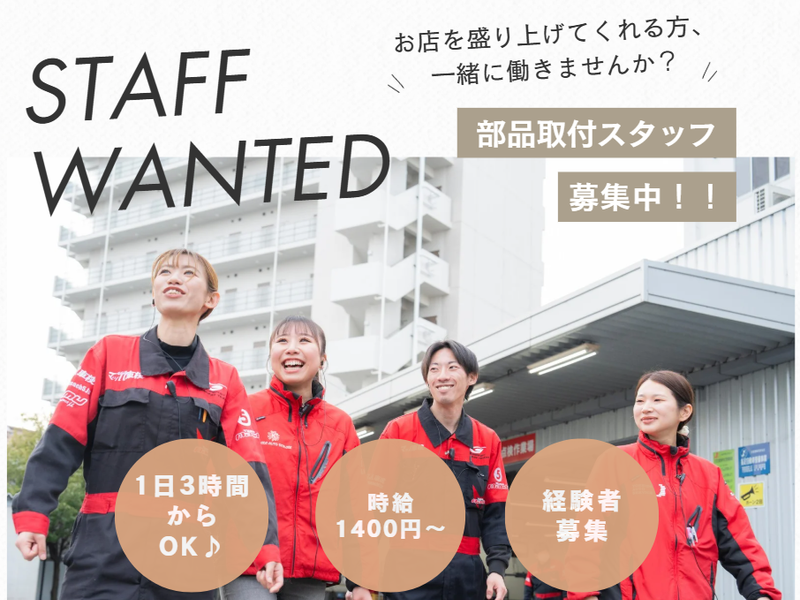 職種/仕事内容 | 仕事内容 ✨✨この求人のアピールポイント✨✨ 1|高時給1,400円スタート! 2|週2日・1日3時間~の自由シフト 3|残業ほぼナシで定時退社OK 4|土日祝は時給50円アップ! 5|火曜・水曜が定休日 ✅仕事内容  ̄ ̄ ̄ ̄ ̄ ̄ ̄ ̄ ̄ ̄ ̄ ̄ ̄ ̄ ̄ ̄ ̄ 整備士の補助として、 簡単な作業をお任せします◎ 重量物の扱いや難しい作業ナシ! 「メカいじりが好き」 「体を動かす仕事がしたい」 そんな方にピッタリです☆ ⏩具体的な仕事内容 ■カーナビ‧ETCなどカー⽤品の取り付け ■簡単な⾞の⽇常点検 ■空気圧チェック など ✅働きやすさの理由を紹介♪  ̄ ̄ ̄ ̄ ̄ ̄ ̄ ̄ ̄ ̄ ̄ ̄ ̄ ̄ ̄ ̄ ̄ ⭐しっかり稼げる高時給 └スタート時給は高めの1,400円! さらに、土日祝は時給50円アップ☆ ⭐プライベート優先OKの自由シフト └週2日・1日3時間~勤務OK! 「家事の合間に」「Wワークと両立」など ライフスタイルに合わせて働けます◎ ⭐経験を活かしてステップアップ★ └免許と経験があれば即戦力◎ 扱ったことのない製品でも、先輩が 丁寧にサポートするので安心です! ⭐残業ほぼゼロでメリハリ勤務 └残業にならないように スケジュールを組んでいます◎ 仕事終わりの予定も立てやすく、 メリハリをつけて働ける環境です☆ ✅当社について  ̄ ̄ ̄ ̄ ̄ ̄ ̄ ̄ ̄ ̄ ̄ ̄ ̄ ̄ ̄ ̄ ̄ 「お客様、働く全ての社員が幸せになる 会社」をミッションに掲げている当社。 「車のかかりつけ医」として 南大阪エリアにおける軽自動車販売台数 No.1の実績を誇り、お客様からの高い 評価と信頼を得ています。 |