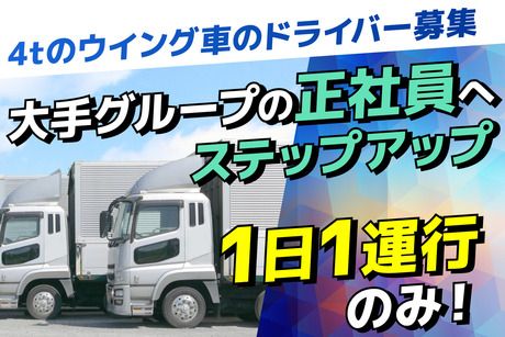 職種/仕事内容 | 仕事内容 大型・長距離からの乗り換え歓迎◎“毎日家に帰れる”働き方へ! 「そろそろ長距離は卒業したい」 「でも収入は大きく下げたくない」 同じ思いを持つ40代・50代の方が活躍中。 無理なく続けられる“ちょうどいい働き方”、ここにあります◎ - 【お仕事内容】 アパレル商品や日用品など軽量物中心! 近距離~中距離の配送業務をお任せします。 4t車(ウィング車)を使用し、 大阪を拠点に近畿~中部エリアまで配送。 夜間~午前中がメインの時間帯で、 1日1運行・積み下ろしは1~2件程度とシンプルな流れです。 荷物はパレットやケース単位が中心で重量物はほぼなし。 毎日決まったルートではなく行先に変化があるので 「運転そのものが好き」という方にもおすすめです。 < 1日のスケジュール例 > ■04:00…出社・点呼/積み込み作業 担当する荷物を確認しながら、 拠点で積み込み作業を行います。 ■04:30…出発/大阪府内の店舗へ配送 1日2~3件の配送が中心。 繁忙期でも5件程度と、無理のない件数です。 ■10:00…一度拠点へ戻り、神戸方面へ再出発 休憩をはさみながら、次の配送に備えます。 ■13:00…拠点に帰社/日報を提出して業務終了 お疲れさまでした! 大型・長距離からの“シフトダウン”に最適 これまで大型・長距離を頑張ってきた方が 無理せず続けられる環境をご用意。 ・日帰り運行で生活リズム安定 ・拘束時間が短く、身体への負担少なめ ・経験を活かして即戦力として活躍可能 「引退はまだ早い。でも今の働き方はきつい」 そんな方にぴったりのポジションです◎ 働きやすさ重視の勤務スタイル ◎夜間~早朝配送で渋滞ストレスなし ◎1日1運行が基本 ◎無理な件数なし(繁忙期でも最大5件程度) ◎年間休日110日でしっかり休める 体を休めながら、 長く安定して働ける環境を整えています。 最後の転職にぴったりの環境 40~50代のドライバーが中心に活躍中! 大型・長距離経験者も多数在籍しており、 「分かってくれる仲間」がいる職場です。 無理な運行や過度なプレッシャーはなく、 落ち着いた雰囲気で働けます◎ 【ロジネットジャパングループについて】 ロジネットジャパングループは、 日本全国の物流を支える総合物流企業グループです。 「物流(ロジスティクス)」と 「ネットワーク」を組み合わせた社名の通り、 陸・海・空すべての輸送モードを活用した 広域なネットワークを強みに、 日々の暮らしや企業活動を支えています。 北海道から九州まで約100拠点を展開し、 BtoBの長距離輸送から、BtoCの小口配送、 さらには重量物の特殊輸送まで幅広く対応。 時代のニーズに合わせた「環境負荷の低減」や 「省人化」にも取り組みながら、 持続可能な物流サービスの実現を目指しています。 安定した経営基盤のもとで、 安心して長く働ける環境が整っているのも、 当グループならではの魅力です! |