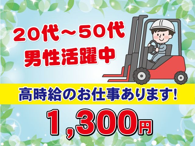 フォークリフト作業/20~50代男性活躍中 時給1300円~/前払いOK/土日休み 積み込み作業なし