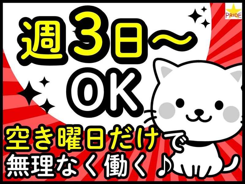 職種/仕事内容 | 仕事内容 【お仕事番号:10202】 \未経験大歓迎♪男性スタッフ多数活躍中/ ✅10時からの勤務→朝はゆっくりSTART♪ ✅土日祝はお休み&平日の内で週3~働ける ✅ガッツリ稼ぎたい方は週5勤務も大歓迎! ✅毎月希望休も相談できて予定との両立も◎ - <お仕事内容> \20代~50代の男性スタッフが活躍中!!/ ・家庭用や業務用のシーリングライト ・蛍光灯 などの照明器具を扱う倉庫での軽作業! 【具体的な作業は…】 *ピッキング作業… ハンディスキャナを使用して、商品棚から 指定の商品・個数を台車に集める作業。 *仕分け作業… ピッキングされた商品をハンディスキャナで 商品や数に間違いがないかを確認。 →出荷先ごとにパレットに並べる作業。 *商品ラップ巻き作業… 商品が積まれたパレットの周りを回って、 商品にラップを巻き固定する作業。 ※商品の重さは5~15キロほどで様々です。 / ☆商品の出荷作業全般をお願いします!! ☆作業は超単純!未経験から活躍できます♪ \ - <この仕事に関するQ&A> Q.雇用形態は何ですか? A.派遣 Q.職種は何ですか? A.倉庫・物流・入出荷作業 Q.仕事の特徴は? A.未経験歓迎 交通費全額支給 1日8時間勤務 土日祝休み 平日週3~5日勤務 服装・髪自由、ピアスOK #ほかにもご希望に合わせてお仕事多数紹介できます! |
