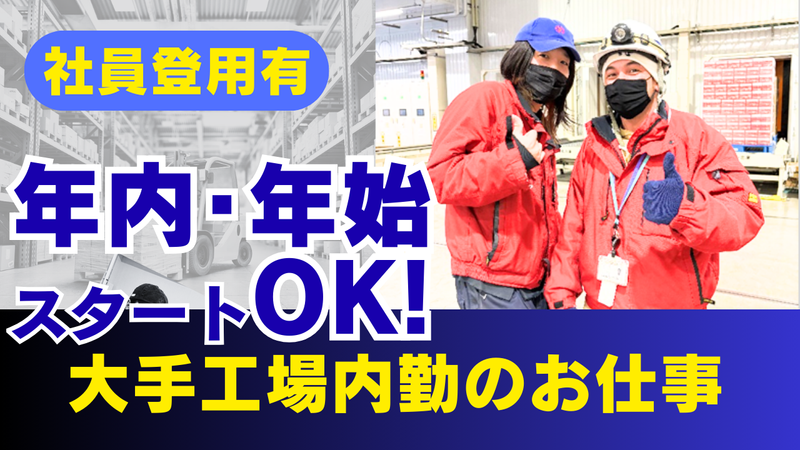 対象となる方 | 求めている人材 ◆高卒以上 ◆要フォークリフト免許 \こんな方歓迎します/ ◎短期やスポットでフォークリフト作業 をしていた方! ◎ブランクのある方 ◎フリーターさん ◎将来的に社員登用を目指したい方 \年内就職まだ間に合います!/ ・年内入社OK/年明け勤務開始OK ・応募からスピード採用 ・すぐ働きたい方、収入を安定させたい方歓迎 20代・30代・40代・50代まで幅広く活躍中。 新しい年に向けて「安定したキャリアを築きたい」という方にもおすすめです! |
