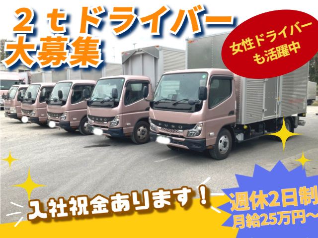 職種/仕事内容 | 仕事内容 \入社祝金有!2tドライバー募集/ 業務拡大につき2tトラックドライバーさんを募集いたします。未経験者・ブランク有る方も大歓迎です。 2025年4月より入社した方には入社お祝い金10万円支給!※勤務半年後に支給となります 幅広い世代の男女が毎日元気に活躍中です! また当社は健康管理に注力しているため、入社後も安心して働けますよ。 <おすすめポイント> 〇入社お祝い金10万円 ※勤務半年後に支給 〇週休2日制 ※土日など連休可 〇経験不問、未経験者歓迎 〇新車も増車中 <仕事内容> 2tトラックで雑貨などをメインに配送 ▼詳しくは・・・▼ 配送ルート 1~2ヶ所の大手メーカーから、1~3ヶ所の各店舗へ配送 (※配送例になります) ▼メリット・・・▼ 〇地場メインの配送ドライバーで無理なく働ける 〇16時退勤で夕方の時間を有効活用できる <女性ドライバーも活躍中> 当社では30代から40代・50代中高年(ミドル)の男女幅広い社員が多く在籍しています。 ・社会人デビュー ・トラック運転手デビュー ・中高年の転職者 なども多数のドライバーが活躍中!あなたの新しいスタートを応援します。 <プライベートの時間たっぷり> 朝は早いけど、16時台に退勤出来るのが魅力。 ・スーパーの特売や買い物に行ける ・夕ご飯の準備や家族と一緒に食事 ・子守や家事全般 などアフター4の過ごし方を堪能できます <健康に備えてばっちり> 当社では、今後の物流業界を支えていくドライバーさんの健康管理に力を入れています 年2回の健康診断実施はもちろんのこと再検査や睡眠時無呼吸症候群の簡易検査も行っております 万が一、定期通院となった場合でも完治するまでの費用は会社が負担します お電話でのご応募・ご質問等も受付けております。皆様からのご応募、心よりお待ちしております。 ー株式会社ロジコムサポートー TEL 0297-44-5002 2トントラック運転手採用フォーム https://entori.jp/logicom-support |