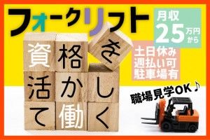 リフト免許をお持ちの方が活躍できる職場です!☆工場見学随時実施中です!☆入社日についてはお気軽にご相談ください!