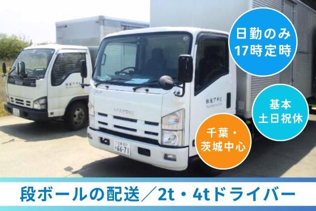 2t・4tドライバー/日勤のみ・関東圏配送/基本土日祝休みで働きやすさ◎年間休日111日 「長距離運転はちょっと…」そんなあなたにぴったりの職場です。 昭和56年創業の段ボール資材メーカーで、千葉・茨城を中心とした関東圏内の配送業務を担当。 日勤のみで身体への負担も少なく、基本的に土日祝休み(月1回土曜出勤あり)。 未経験からスタートした先輩も多数活躍中。 安定した環境で、無理なく長く働ける職場です。
