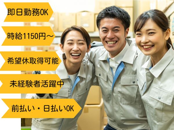 人気の軽作業・私服勤務OK・髪色自由・商品数少なめ・シフト制・希望休取得OK!【日払い・週払い】