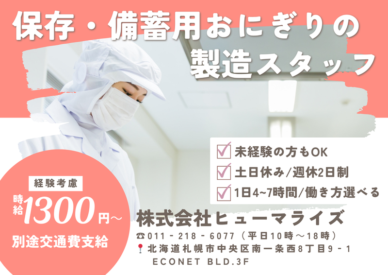 ㈱ヒューマライズ(小樽市銭函/OT103) の求人詳細