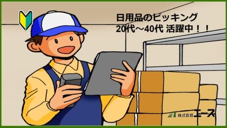 職種/仕事内容 | 仕事内容 仕事内容 食料品のピッキング作業です! 主なお仕事は、ドラッグストアに納品するための日用品(お菓子や食料品など)を店舗ごとに仕分けして出荷の準備をする作業です。 ※ハンディターミナルを使用します。 たくさんの商品がありますので、最初は商品の種類を覚えるのは大変ですが、初めての方でもモクモクこなすことにより、どんどん早くなります! 求人のポイント ・未経験の方も活躍できるカンタン軽作業です。 ・事前に職場の見学をしてから働くことが可能なので、お仕事内容を確認してから安心スタートできます。 【株式会社エースの特徴】 株式会社エースでは、事務職や物流関連、工場勤務や製造業の経験がない方やベテランスタッフもそれぞれの環境に沿ったお仕事をご紹介いたします。 現在、お仕事をしていただいてるスタッフさんは 年齢幅も20代、30代、40代、50代の方など幅広い年代のスタッフさんが活躍しています! また勤務スタイルも、あなたに最適な働き方をご提案をさせていただきますのでご安心ください! 例えば土日祝休みが希望、 ゴールデンウィーク、夏季休暇、年末年始などの長期休暇が有る職場が希望、 長期間働ける職場が希望! 短期間働いて自分の趣味との両立をしたい、登録だけしておきたい、などなど・・・ ご自身の希望する働き方をお気軽に相談してください! 転職希望の方や、正社員で働くためにスキル UPをしたい方もぜひご相談を ! |