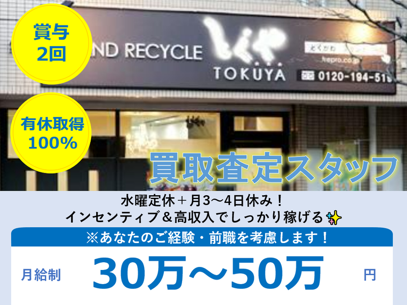 職種/仕事内容 | 仕事内容 ✨当社を取材したリクルートの営業から “買取査定職をお探し” の求職者様に一言✨ 『成長もして市場価値も高めたい。頑張った分はちゃんと還元されたい!これが叶う素敵な会社です。』 リクルートの営業担当の本田が社内インタビューをして、率直に思ったことです。 月給・年収も同業他社に比べると高水準なので、経験者はもちろん 安定して稼ぎたいけど成長意欲もある未経験者も必見求人です(^_-)-☆ ―――――――――――――――――― ⭐ここで働く魅力⭐ ―――――――――――――――――― <賃金面> ✅月給30万円以上のスタート …昨今のトレンドは、月給25万円以上。これをしっかり上回っております! ⭐やりがいと給与がしっかりイコールでありたいという方にも満足いただけます ✅年収500~600万以上もしっかり稼げます✨ …お客様と関係性を気づけば、必ずといって「○○さん~査定して!」って来店してくれます。 ⭐ファンが増えるとグルグル回って、収入上がっていくので、お金も接客の楽しさも両方やりがいがでますよ(^^)/ <やりがい面> ✅幹部候補の一員に! …今は代表がメインで行っていますが、二人三脚で当社を大きくしていきたい!そんな思いからの募集です。 ⭐代表との距離も近いの意見を交わしやすいのが働きやすい環境(^^)/ ✅頑張り次第ではドンドン給与も上がり、キャリアUP・スキルUPが叶います! …インセンティブ制度あり、結果次第ではしっかり給与もあがります! ⭐「賞与や給与面はもちろんですが、成長できる環境でもあり市場価値がちゃんと上がってる実感ができるのも転職して良かったポイントです!」by前職 貴金属の買取査定スタッフ <環境面> ✅マイカー通勤OK/交通費として駐車場代を充てるのも◎ ⭐名古屋市の会社で、無料駐車場完備でマイカー通勤OKは嬉しい条件(^^♪ ✅FCも応援!一国の主も目指せます✨ …もちろん、会社の幹部として当社を舵切していく立場になるのもOK! ⭐全力で頑張るあなたの想いをしっかり応援します! <労働条件> ✅基本残業なし ✅有給取得も推奨(有給取得100%)✨ …この仕事は好きだけど、もう少し自分の時間が増えたら嬉しいな。なんて思ってる方にもピッタリ♪ ⭐プライベートは友人と遊びにいったり、家族で旅行に行ったりと充実させることもできます。 ―――――――――――――――――― ⭐具体的な仕事内容⭐ ―――――――――――――――――― 業界の花形ともいえる ★買取査定★ お任せします♪ ▼時計やバッグなどのブランド品、日用品・雑貨・洋服・家電など幅広い商品の買取査定 ・店舗に持ち込まれる幅広い商品の鑑定・真贋チェック、買取査定 ・出張買取(お客様よりご要望があった場合) ・簡単なPC作業 ―――――――――――――――――― ⭐当社について⭐ ―――――――――――――――――― 1996年(平成8年)の創業以来、 古物商・リサイクルショップとして 「心」を大切にした商売を続けてきました。 世の中に便利なものが溢れ、 人々の生活が大きく様変わりしても その理念だけは変わりません。 どんなに技術やシステムが発達し 進化のスピードが激しさを増しても、 結局、その中で生きているのは人間です。 1996年の創業時は『酒井商店』という個人商店だった私たちが 亀のような歩みでも少しずつ前に進み、 法人化、そして店舗を構えるまでに成長できたのも お客様や地域の方、そして一緒に働く仲間がいたからこそ。 これからも感謝の気持ちを忘れずに お客様の想いを繋ぐ事業を 続けていきたいと思っています。 ぜひ、この想いを受け継いでくださる方がいれば 一緒に働いていただければ嬉しく思いますm(__)m |
