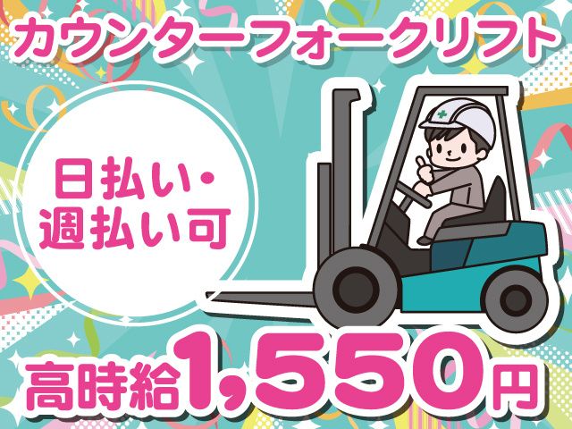 職種/仕事内容 | 仕事内容 お酒の工場でのカウンターフォークリフトオペレーター募集! 日払い・週払いOK 高時給1,550円~! 月収26万円以上も可能 髪型・髪色自由!ひげOK 休憩室完備 車・バイク・マイカー通勤OK <お仕事内容> お酒の工場にて、エンジン式カスケードフォークリフト(4本爪)を使用した ほぼ乗りっぱなしの作業をお願いします。 ・製品の出荷準備(ピッキングや運搬) ・順次納入された資材や原料の受入、保管場所への運搬 ・トラックへの積込 ・在庫確認、倉庫内整理 ・生産ラインから倉庫までの運搬 ・資材回収 作業の8〜9割はフォークリフトに乗った状態での作業なので、 身体への負担が少ないのもポイントです! 20代・30代・40代・50代の幅広い年齢層のスタッフが多数活躍中です。 気になった方は、お早めにご応募ください <月収例> 月給:260,400円 (12,400円×21日) <ブランクOK!> 経験が少なくても現場で研修の場を設けております。 慣れるまではベテランが付いて教えてくれるので 安心してスタートできます。 「自分の時間や家族との時間を大切にしたい」 「稼げるお仕事がしたい」 「体力的にムリなく働ける仕事を探している」 なんて方にもオススメ! 主婦パートさん、フリーターさん、 Wワーカーの方、中高年・シニアの方など 幅広い年代の方が活躍中です◎ 「ブランクがあるけど、 アルバイト・パートの経験や フォークリフトの経験を活かして働きたい」 「地元で仕事を探している」 「手に職をつけたい」 など 志望動機はなんでもOKです! <うれしい日払・週払OK> 「すぐにお金が欲しい」という方や 「月末まで待てない」という方は 日払・週払で即お給与GET WEBでの面接も可能ですのでお気軽にご応募ください。 |