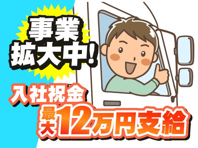 【入社祝い金12万円】 積極採用中/手積み・手降しなしの中型ドライバー/お休みの相談OK/賞与年2回