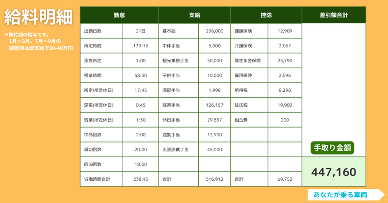 対象となる方 | 求めている人材 <求める人材> 「もっと早く転職すればよかった」と思える環境を。 30代・40代の現役世代、同業からのキャリアアップを検討中の方を歓迎します! 【必須条件】 ・大型2種運転免許所持 ・観光バスの乗務経験6カ月以上 (ブランクがある方も、まずはご相談ください!) ╭━━━━━━━━━━━━━╮ 無理なく働き続けられる 会社を目指して 制度を整えています! ╰━━━━━━v━━━━━━╯ ✅ 「拘束時間は長いのに、給料が低い」とお悩みの方へ 業界では珍しい!待機時間(客待ち)も100%労働時間! 一般的には給与が出ない「お客様の観光中の待機」も、当社ではしっかりカウント。 あなたの拘束時間を無駄にせず、分単位の残業代として還元します。 観光手当も充実! 観光業務に4時間以上乗務すれば、1日2,500円を別途支給。 頑張りが目に見える形で給与に乗ります。 ✅ 「家族との時間やプライベートを諦めたくない」方へ 休みはしっかり、育休も100%! 「週休2日制」に加え、介護・育休の申請通過率は100%。 男性社員の育休取得実績(3ヶ月)もあり、パパさん世代も安心して働けます。 中休時間は「一度帰宅」もOK! 朝夕の送迎の間の待機時間は、自宅に帰って家事や休憩をしてもOK。 自由度の高い働き方が可能です。 ✅ 「人間関係をリセットして、ゼロから始めたい」方へ 2026年1月オープン!全員が同期のフラットな組織 新営業所のオープニング募集なので、面倒な上下関係はありません。 最新のデジタル勤怠管理も導入し、クリーンで透明性の高い環境でスタートできます。 ✅ 「景気に左右されず、安定して稼ぎたい」方へ 閑散期も安心の「二刀流」ワーク! 観光ニーズが落ち着く時期は、企業送迎バスへの振替が可能。 年間通して仕事が途切れないため、生活の安定感は抜群です。 副業・Wワークも公認! 「もっと稼ぎたい」「趣味を活かしたい」という方のための副業もOK。 個人の幸福度を優先する社風です。 |