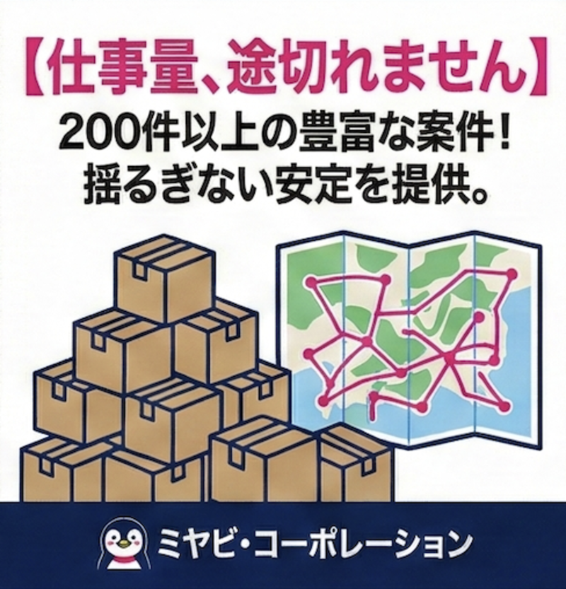 アピールポイント: ╭──────*・゜゜・*──────╮ ・企業配メインで再配達がほぼゼロ! ・18時稼働終了OK&土日祝休みOK ・未経験でも初月から安定報酬! ・固定ルートなので道もすぐ覚えられる! ・軽自動車(AT)で運転もラクラク ╰──────*・゜゜・*──────╯ お届けするのは、現場や店舗を支える大切な金物パーツ。ピッキング作業で適度に体を動かし、運転でリフレッシュする。そんなメリハリのある毎日を送りませんか? 軽バン1台から始められる、新しい自由なキャリア。 まずは一度お話してみましょう!