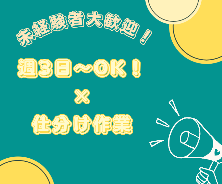 \週3日〜、1日3時間勤務OK!商品の仕分け作業♪高時給1600円×交通費支給☆彡/土日祝休み×状況によって早上がりも可能◎@摂津市鳥飼上♪年齢・経験不問◎幅広い世代の方が活躍中!ブランクのある方も大歓迎★マイカー・バイク・自転車通勤OK!
