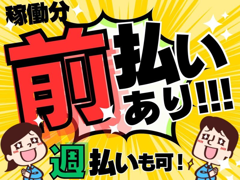 待遇・福利厚生 | 【保険制度】 雇用保険、労災保険、健康保険、厚生年金 【福利厚生】 待遇・福利厚生 【福利厚生】 〇社会保険完備 〇交通費規定支給 〇週払い・前払い制度(規定あり) 〇車通勤可 〇有給休暇 〇作業服貸与 〇退職金制度あり 〇お友達紹介制度有(特典あり) ○派遣先での正社員登用制度あり |