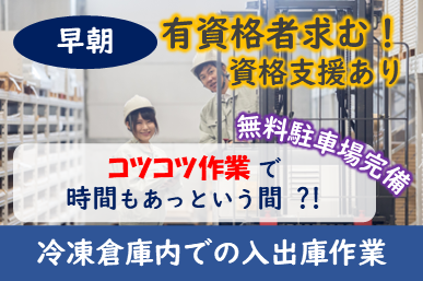 ≪物流倉庫でのフォークリフト業務≫フォーク資格所有者大歓迎♪早朝からのお仕事なので終わった後の自由時間もしっかり確保できます!