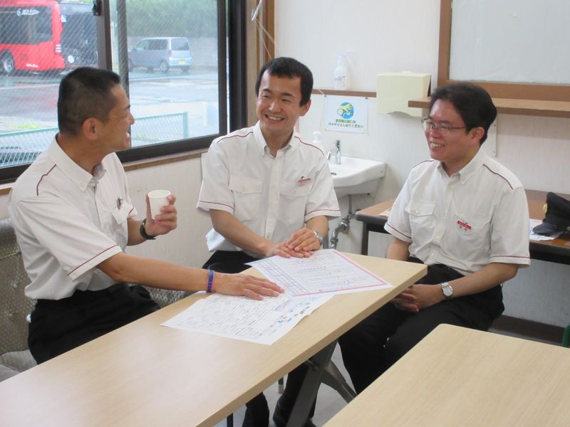職場環境・雰囲気 | 職場環境 ★風通しが良く、アットホームな雰囲気★ ベテラン運転士さんも気さくでフラットに接してくれる 「とにかく休憩時間が楽しい」というスタッフも! 新人さんも、休憩室にも入っていきやすく、 気兼ねなく相談できる環境で安心! 喫煙所:喫煙所あり(屋外) 屋外に喫煙スペースがあります。 |