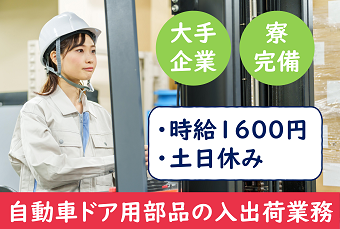 職種/仕事内容 | 仕事内容 【高時給1600円×フォークリフト業務】食堂が350円~利用可!土日休み!20代~40代の男女活躍中!月収30万円以上可能!東京へ入寮できちゃう!車やバイク通勤OK!CDPスタッフ活躍中♪ <仕事内容> ・リーチフォークリフトにて自動車部品の入出荷業務 ・伝票を確認しながらピッキング ・製品の箱詰めや仕分け作業 ◎ご自身の実務経験を活かすことができます♪ ◎製造部署、検査部署、ミシン縫製部署も同時募集中! お気軽にお問い合わせください! 座り作業でのお仕事です。 運転作業もございます。 個人作業となります。 《職場環境》 男女活躍中の職場です。 CDP派遣スタッフが在籍中です。 外国籍の方活躍中! ・食堂もあり、お昼休みや休憩時間にはリラックスできます。 ロッカー有り|休憩室完備|売店有り アピールポイント <仕事内容> ・リーチフォークリフトにて自動車部品の入出荷業務 ・伝票を確認しながらピッキング ・製品の箱詰めや仕分け作業 ◎ご自身の実務経験を活かすことができます♪ ◎製造部署、検査部署、ミシン縫製部署も同時募集中! お気軽にお問い合わせください! 座り作業でのお仕事です。 運転作業もございます。 個人作業となります。 《職場環境》 男女活躍中の職場です。 CDP派遣スタッフが在籍中です。 外国籍の方活躍中! ・食堂もあり、お昼休みや休憩時間にはリラックスできます。 ロッカー有り|休憩室完備|売店有り \充実した福利厚生/ ◎社会保険・雇用保険完備 ◎有給休暇有(6ヶ月経過後、10日付与)※規定あり ◎残業手当 ◎交通費支給(規定内) ◎確定拠出年金制度 ◎週払い制度(週3回対応) ◎お友達推薦制度あり(規定有り) ※1名につき3万円~10万円臨時給与として支給 ◎車(マイカー)・バイク通勤可(無料駐車場あり) ◎職場見学あり ◎制服支給 ◎食事持参可 ◎社員食堂あり(1食350円~) ◎ロッカー・休憩室・売店・自販機利用可 ◎寮完備 ◎福利厚生プログラム (宿泊、グルメ、ショッピングなど大幅割引が受けられる10万アイテムのメニューがあります。) |