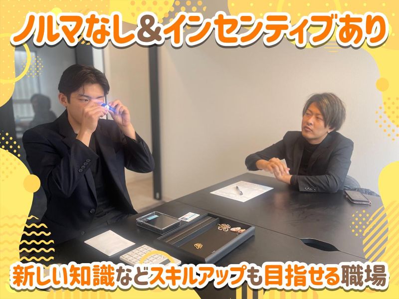 職種/仕事内容 | 仕事内容 ✅買取査定の経験者募集!ブランクOK◎ ⇒年齢不問◎経験を活かして活躍! ✅ノルマなし◎歩合給・インセンティブ有 ⇒平均月収50万円の実績あり◎ ✅あなたの声で職場がよりよいものに! ⇒新しい会社だからこそ意見が通りやすい◎ =================== \経験者がこの職場を選ぶ理由とは?/ 入社半年のスタッフも在籍中! この職場を選んだ理由もご紹介◎ =================== 査定士として 新たな職場を探していたHさん。 「土曜日は野球をしに行くのが楽しみ!」 そんな彼がこの会社を選んで良かった と思えた理由を3つご紹介! ✅プライベートを大切にさせてくれる職場 ▶働きながら軟式野球のクラブチームで 活躍しているHさん。 土日に試合があるため、 「試合がある週だけでも休みたい…」 サービス業のこの業界では そんな希望も諦めていました。 ですが面接時、 「プライベートはぜひ大切にしてください」 と、この希望を快く承諾してくれた。 その企業はこの会社だけでした。 ✅自身の意見を会社に反映させられる環境 ▶以前の職場は、会社の方向性の違いで退職。 自らの意見を通そうにも、しがらみもあり チャレンジできる環境はありませんでした。 ですが今の会社では ・自分の知識、経験、人脈など 活かしたい強みを積極的に取り入れて 業務に取り組ませてもらえる ・何百万超えの商品の落札など大型案件も 会社のフォローの上で挑戦できる など、やりたい自分の働き方を受け入れて 職場に新しいものとして反映してくれます。 ✅経験者でも新しく学びを得られる環境 ▶Hさん自身も長年、買取・リユース業界 に関わってきましたが ・業界20年のベテラン店長からの学び ・別業界経験者の営業職としての 違った視点でのお客様との関り方 など まだまだ自分はスキルアップできるんだ と、思わせてもらえる職場です。 ▶経験者だからこそ、 直面する働き方の苦しさや不満。 それをしっかりと受け入れて 職場に反映させてくれる会社! ぜひ一度お話しだけでも 聞きにいらしてくださいね。 =========== 【お仕事内容について】 =========== ・店舗や催事場に来店された お客様の貴金属等の査定・買取 ・ヤフーオークションなど、ネットへの 商品掲載・販促活動 ・売れた商品の発送業務・売却業務 ≪催事≫ 月に2週間程度、 関西圏を中心に 店長と一緒に催事会場に向かいます。 ≪取り扱い商品≫ 貴金属やブランド品をはじめ、 スマホ・タブレット・アパレル ・楽器・家具・家電・食器 自転車・ゴルフ用品 など、 お客様からの 「ありがとう」の言葉が増えるよう 買取商品も幅広く取り扱っています。 ============ \\メリットポイント// ============ ✅経験・能力に応じて稼げる環境 ▶歩合給とインセンティブもあるため、 経験や能力を活かしていけば、 自分の収入もドンドンUP! ノルマもないので お客様との関係性も大切にしつつ、 自分のスタイルを磨いていけますよ◎ ✅年齢不問!ブランクOK◎研修サポートも ▶買取査定や古物査定の経験者であれば 年齢も資格も不問◎ ブランクのある方や能力に不安がある方も 充実の研修で商品知識・接客・営業スキルも きちんと装着をサポートします。 |