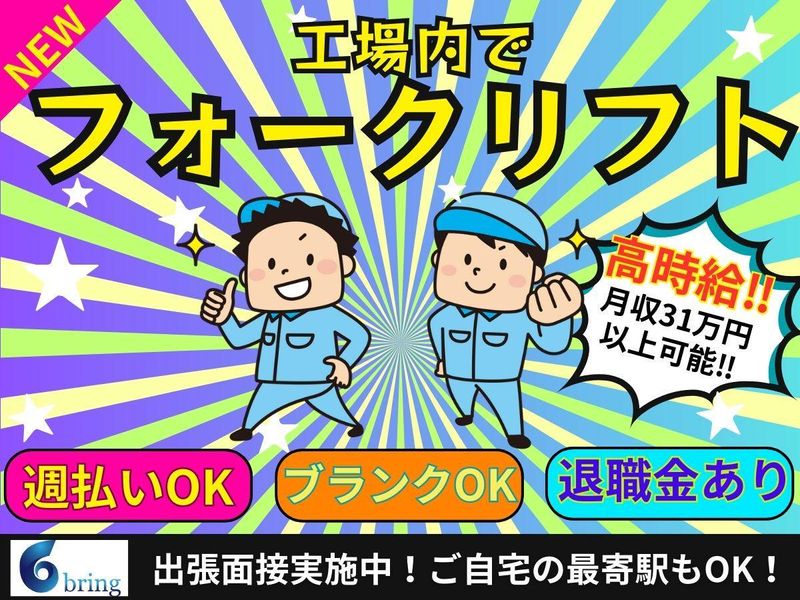 職種/仕事内容 | 仕事内容 まずは60秒の動画をご覧ください↓ https://youtube.com/shorts/6hkIt7o3q0Y (※コピペして見てみて下さい!約60秒) フォークリフト経験を活かして、 残業でガッツリ稼げる。 40~50代が7~8割の職場で、 42歳が即戦力として活躍できます。 ======================= ■仕事内容 ======================= かすみがうら市の倉庫内での フォークリフト作業メインのお仕事です。 “時給1,350円”の高時給に加え、 残業月10~20hで平均月収30万円以上。 ガッツリ稼ぎたい方に最適な環境です。 【担当業務】 ■ 完成した製品の入出庫作業(メイン業務) カウンターフォークを使用した倉庫内作業。 フォーク作業が約8割を占めるので、 フォークリフト経験がそのまま活きます。 完成品をフォークで運搬し、指定された 場所へ入出庫をお願いいたします。 経験者なら2週間の研修後、1ヶ月ほどで 独り立ちできます。 ■ 簡単な製品カット(その他軽作業:約2割) カッターを使用した軽作業。 難しい作業では ありません。 40~50代が7~8割の職場なので、 40代は中心世代として活躍できます。 お仕事内容は先輩社員がマンツーマン で丁寧に教えてくれます。 - お仕事が始まったあとも、bring plusの担当スタッフが最低でも月2回ほど職場にお伺いしてサポートします。 困ったことや悩みごとは、すぐに相談できる環境です。 「派遣は初めて…」という方も、安心してスタートできますよ! |