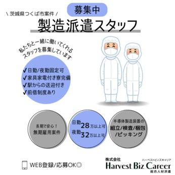 その他 | その他 友達と応募OK、履歴書不要 【ブランド名】 株式会社Harvest Biz Career 【事業内容】 人材派遣・人材紹介 |