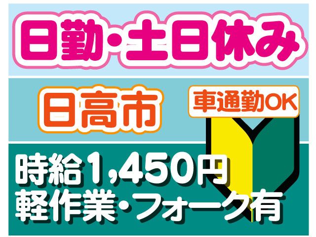 職種/仕事内容 | 仕事内容 日高市の企業にて 足場資材の清掃・検品・ピッキング・梱包 【フォークリフト作業もあります】 【仕事内容】 建設現場などで使用する足場資材の 管理業務をお任せします。 具体的には… ・資材の清掃 ・検品(キズや汚れのチェック) ・ピッキング(必要な資材の仕分け) ・梱包作業 に加えて、フォークリフトを使用した 資材の運搬もお願いします。 (ポイント) 〇作業着・ヘルメット・安全靴支給 〇フォークリフト資格を活かしたい方にピッタリ 〇未経験OK 〇土日休みでプライベートも充実 〇大型連休あり 〇日勤 〇長期安定勤務を希望の方にピッタリ 〇30代40代50代の元気な男性活躍中 〇交通費規定内支給 〇週払いOK(規定有) 〇出張面接OK(お気軽にご相談ください) (福利厚生) 〇交通費支給(当社規定あり) 〇週払い制度(規定あり) 〇出張面接OK(お気軽にご相談ください) (応募フロー) 〇ご応募 お電話/メール 〇当社から連絡(登録日時設定) ここである程度ご説明できます 〇ご登録 簡単、もちろん無料です 〇工場見学 色々見れて質問OK 〇お仕事開始 さぁ、新生活のスタートです 現在、ティ-・エム・エス鶴ヶ島インター支店 にて面接を受け付けております。 また現場付近においても出張登録も行っております。 Web環境を利用して自宅に居ながら登録出来る Web面接を随時実施しております。 電話でのご連絡もお待ちしております。 TEL. 049-289-4521 (採用担当まで) その他のお仕事はこちらから https://entori.jp/tms-tsuru |