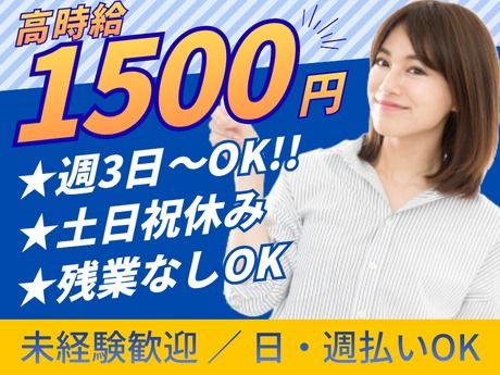 《今だけ!高時給1500円×日・週払いOK》平日週3日~OK!シンプル作業で未経験でも安心◎