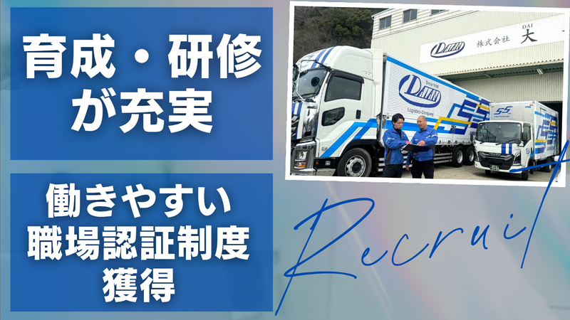 職種/仕事内容 | 仕事内容 <この求人のポイント>  ̄ ̄ ̄ ̄ ̄ ̄ ̄ ̄ ̄ ̄ ̄ ̄ ̄ ̄ ̄ ̄ ̄ ̄ ✅歩合制度、各種手当など給与サポートもバッチリ! ✅全営業所で「働きやすい職場認証制度」も認証取得済み ✅福岡県内を中心とした近距離の集配業務 ✅GW / 夏季 / 年末年始休暇などの大型連休もあり!  ̄ ̄ ̄ ̄ ̄ ̄ ̄ ̄ ̄ ̄ ̄ ̄ ̄ ̄ ̄ ̄ ̄ ̄ ⭐業務内容  ̄ ̄ ̄ ̄ ̄ ̄ ̄ ̄ ̄ ̄ ̄ ̄ ̄ ̄ ̄ ̄ ̄ ̄ 2t車による「一般雑貨」の集配業務をお願いします。 エリア:福岡市内を中心とした集配業務(1日7~9件程度) 「準中型免許 (旧普通免許の場合は5t限定) 」があれば未経験の方も歓迎! 未経験の方は入社後まずは基礎を学ぶことから行っていただきます。 座学から横乗り研修、実技研修、フォークリフト研修など活躍いただくためのサポートが充実しています。 1チーム約10名体制なので「休みの対応」や「積み込み作業の効率化」などフォロー体制が整っています。 固定のエリアをお任せするので、一度慣れると効率にお仕事ができますよ。 ⭐株式会社大安とは?  ̄ ̄ ̄ ̄ ̄ ̄ ̄ ̄ ̄ ̄ ̄ ̄ ̄ ̄ ̄ ̄ ̄ ̄ 設立55年以上の歴史ある企業です。 1968年設立の当社は「Gマーク取得」はもちろん、全営業所で「働きやすい職場認証制度」も認証取得済みの企業です。 事業基盤がしっかりしているため常に安定した仕事量もあり、現在も事業拡大に向けドライバーさんを増員しております。 あくまでも事業拡大が従業員に負担の掛からないように行っております。 弊社ではご年齢や体力に合わせて、手積み以外の仕事にシフトしたりなど従業員の健康を考えた体制作りを行っております。 今後の体力面で不安を感じる方もお気軽にご相談ください。 ⭐それぞれに合ったキャリアをご用意  ̄ ̄ ̄ ̄ ̄ ̄ ̄ ̄ ̄ ̄ ̄ ̄ ̄ ̄ ̄ ̄ ̄ ̄ ドライバーからスタートしますが、その先は人それぞれです。 ドライバーとして高みをめざす人なら、運転可能な車両を増やし、スペシャリストへと成長できますし、管理者志望の人には、お客様との折衝や配車手配を行う業務や営業所の所長をめざすコースを用意。 将来は複数の営業所を管理する部長職や子会社化して社長をめざすなど、自分らしい未来を創造することができます。 ⭐『イキイキ・ニコニコ・ワクワク』がテーマ  ̄ ̄ ̄ ̄ ̄ ̄ ̄ ̄ ̄ ̄ ̄ ̄ ̄ ̄ ̄ ̄ ̄ ̄ 「せっかくなら楽しく仕事しよう」と、社内では和気あいあいとした明るい雰囲気を大切にしています。 1日運転して疲れて事務所に戻った時、職場の雰囲気が良くなければ、さらにイヤな気分になってしまうと思います。 もし、1日の中で相談したい件があっても上司に言いづらい職場だと仕事にも響くでしょう。 プライベートで嫌なことがあっても、出勤すれば明るい気持ちになれるよう、外出先で大変なことがあっても、社に戻ればリセットできるよう、『イキイキ・ニコニコ・ワクワク』できる職場でありたいと考えています。 |