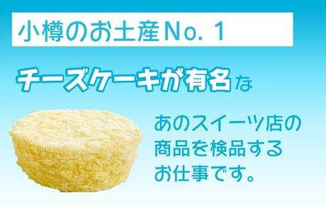 小樽で有名なお土産ナンバー1のチーズケーキなどを取り扱っているメーカーの商品を検品するお仕事です。