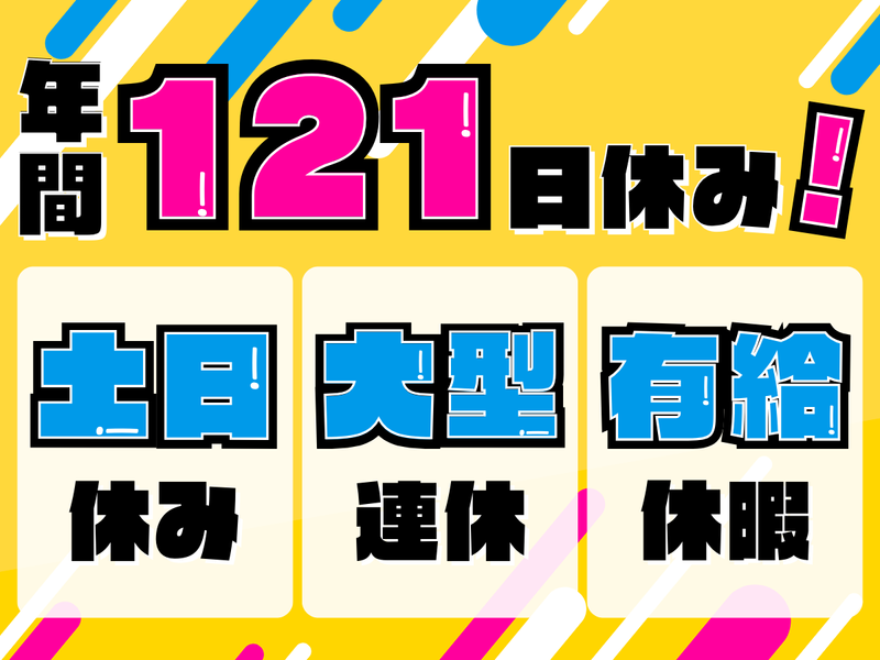 ✅土日休み✅年121日休み✅月収25万円~✅8時-17時固定