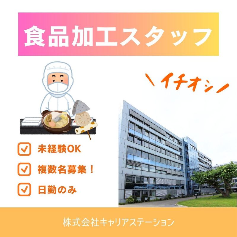 職種/仕事内容 | 仕事内容 *練り製品などの製造補助* ・機械への材料投入 ・商品の梱包 ・検品 ・運搬 などの業務をお願いします◎ ★未経験の方、大歓迎☆ 難しい作業はありません! 同じ時期にスタートする方もたくさんいます! どの工程でもゆっくりペースでスタート◎ 初めての工場ワークでも安心して作業できます! お仕事番号/369115 【アピールポイント】 ●複数名の募集! ご家族やお友達とも一緒に応募OK☆ Amazonギフトカードがもらえる 登録紹介キャンペーンも実施中です♪ ●人気の東区エリア! バイパスも近く、通勤しやすい立地です◎ ●短期のオシゴト☆ 3月頃までの繁忙期対応! 繋ぎで探している方、必見です。 長期ご希望の方は、もちろんその後も続けて お仕事紹介させていただきますので、ご安心ください♪ 【期間】 即日〜2026年3月頃まで 【当社について】 キャリアステーションは、 地域密着型の総合人材サービス企業です。 30年以上の派遣実績で、 地元を知り尽くした人材派遣会社、 安心の広済堂ホールディングス (東証プライム上場)のグループ企業です。 |