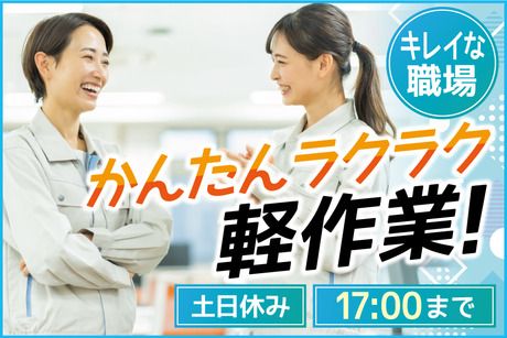 人気の軽作業ワーク!日勤オンリー&土日休みで働きやすさ満点。直雇用実績あり&マイカー通勤OKの好条件!