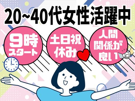 女性活躍中!9時スタートの日勤!有給取得しやすく残業ほぼナシ◎土日祝休みで年間休日125日!