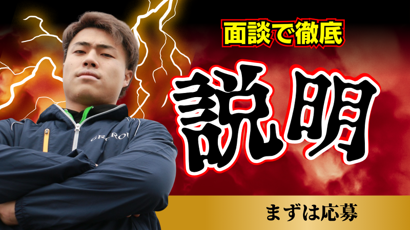 その他 | その他: 【選考の流れ】 1,「応募画面に進む」ボタンをクリック 氏名、アドレス、電話番号等を入力しご応募お願いします! ②面接調整用ツールより、ご入力いただいたアドレス、電話番号宛にメッセージをお送りさせていただきます! ③ 面談は1回を予定しております!(WEBもしくは来社をお選びいただけます!) 業務委託契約・稼働開始 「まずは話だけ聞いてみたい」という方も大歓迎です。 新しい一歩を、僕たちと一緒に踏み出しませんか? 雇用形態: 業務委託 給与・報酬: 23,800円 - 31,500円 1日当たり |