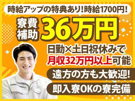 <時給アップしました&総額36万円の入社特典あり!>月収32万以上可!遠方の方も歓迎!寮完備!