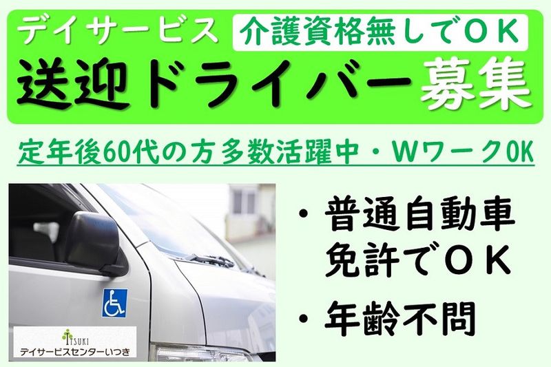 職種/仕事内容 | 【仕事内容】 デイサービスでの送迎ドライバーを募集します! 【こんな方におすすめです】 ・未経験でも福祉に貢献してみたい方! ・運転が好きな方! ・週1日から働きたい方!(週5日も大歓迎) ・定年後に再就職を考えている方! ・年金受給しながら数日から働きたい方! ※在職中の方も多数在籍!入社時期ご相談ください! ※免許はAT限定でもOK!シニアの方も活躍できるお仕事です! ■仕事内容 ・送迎+ご利用者様の誘導・移動サポート ・車両管理(清掃、ガソリン給油等) ・ご利用者様の体調確認 など ※送迎に使用する車は大きいものだとハイエースを運転します。 ■先輩スタッフのサポート充実しています 業務に慣れるまで、先輩スタッフが同乗して送迎を行っていただきます! いきなりで不安な方は、施設見学を随時行っております。お気軽にご相談ください。 ご連絡・ご応募をお待ちしております。 【求人ID-IS2】 |